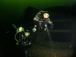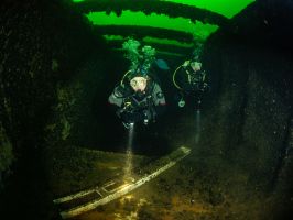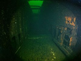 Nurkowanie zaczyna się na lewej, płytszej burcie wraku. Głębokość w tym miejscu wynosi około 25 metrów. Do burty schodzi lina opustowa, a jeśli akurat jest zerwana - sternik stara się rzucić tam prosiaka. Najpłytszymi atrakcjami są dwa rzędy galeryjek, bięgnące wzdłuż statku. Szersza z nich, znajdująca się niegdyś na wyższym pokładzie, przypomina swoimi rozmiarami spory kanion, a w środku spokojnie może płynąć obok siebie dwóch nurków.