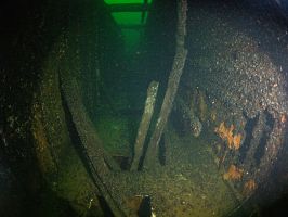 W części rufowej, między głębokością 32 a 37 metrów, można zobaczyć kabestany i wyciągarki oraz otwartą ładownię, jednak największe wrażenie robi gigantyczna płetwa sterowa i oś wału, niestety pozbawiona śruby. Mniej więcej w jednej trzeciej długości wraku patrząc od rufy zaczyna się potężna nadbudówka z licznymi oknami. O dno opiera się gigantyczny komin, można też oglądać wloty powietrza do maszynowni górujące nad nadbudówką.