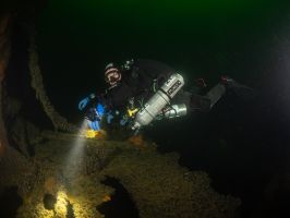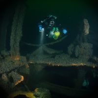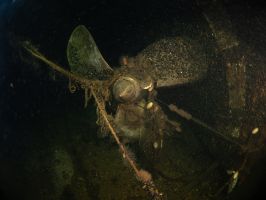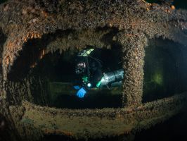 W części rufowej Terra ma nadbudówkę, poprzecinaną plątaniną korytarzy i pomieszczeń załogi. Elementy wyposażenia, w tym armaturę i wyposażenie mesy, widać z zewnątrz wraku. Na górze nadbudówki widać otwarte skylighty maszynowni, przez które widać przestronne pomieszczenie. Poniżej nadbudówki, na samej rufie, widać dwie klatki schodowe. Nad dnem można podziwiać śruby napędowe.