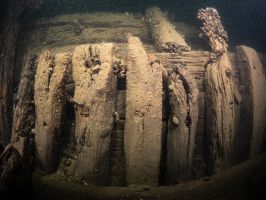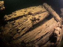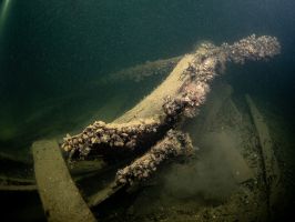 W odległości kilku – kilkunastu metrów od wraku od strony południowej i południowo wschodniej (w rejonie dziobu i prawej burty) odnalezione zostały fragmenty drewnianych belek i desek.