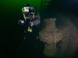 Już na samym początku warto zaznaczyć, że jedno nurkowanie nie wystarczy na zwiedzenie całego Büchnera. Na poznanie tego ogromnego wraku warto poświęcić co najmniej kilka nurkowań. Statek leży na prawej burcie, stąd też najciekawsze elementy wraku zwiedzamy płynąc wzdłuż pokładu.