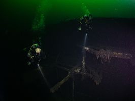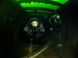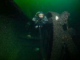 Nurkowanie zaczyna się na lewej, płytszej burcie wraku. Głębokość w tym miejscu wynosi około 25 metrów. Do burty schodzi lina opustowa, a jeśli akurat jest zerwana - sternik stara się rzucić tam prosiaka. Najpłytszymi atrakcjami są dwa rzędy galeryjek, bięgnące wzdłuż statku. Szersza z nich, znajdująca się niegdyś na wyższym pokładzie, przypomina swoimi rozmiarami spory kanion, a w środku spokojnie może płynąć obok siebie dwóch nurków.