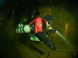W części rufowej Terra ma nadbudówkę, poprzecinaną plątaniną korytarzy i pomieszczeń załogi. Elementy wyposażenia, w tym armaturę i wyposażenie mesy, widać z zewnątrz wraku. Na górze nadbudówki widać otwarte skylighty maszynowni, przez które widać przestronne pomieszczenie. Poniżej nadbudówki, na samej rufie, widać dwie klatki schodowe. Nad dnem można podziwiać śruby napędowe.