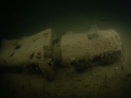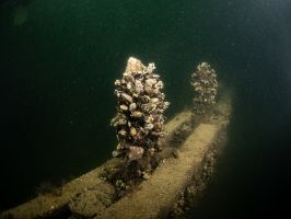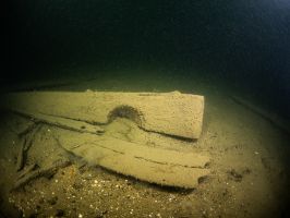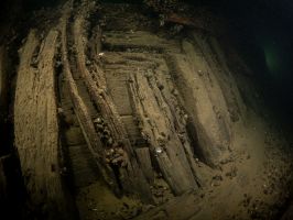 W odległości kilku – kilkunastu metrów od wraku od strony południowej i południowo wschodniej (w rejonie dziobu i prawej burty) odnalezione zostały fragmenty drewnianych belek i desek.